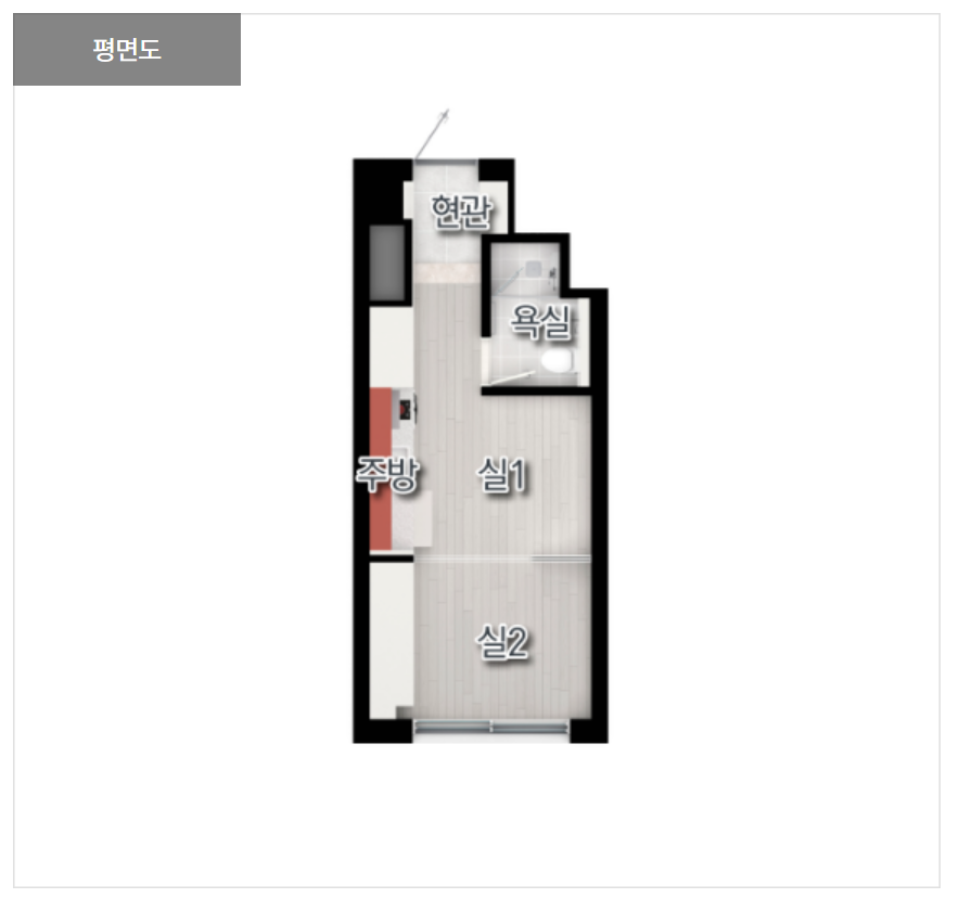 지상 3층부터 지상 42층까지는 주거용 오피스텔로 수요자 선호도 높은 설계로 1인 가구를 위한 중문형 1.5룸부터 신혼부부와 어린 자녀를 둔 2~3인 가구를 위한 투룸형 등 다양한 평면으로 구성되며, 드레스룸과 테라스 등 특화 설계도 적용되었습니다.
