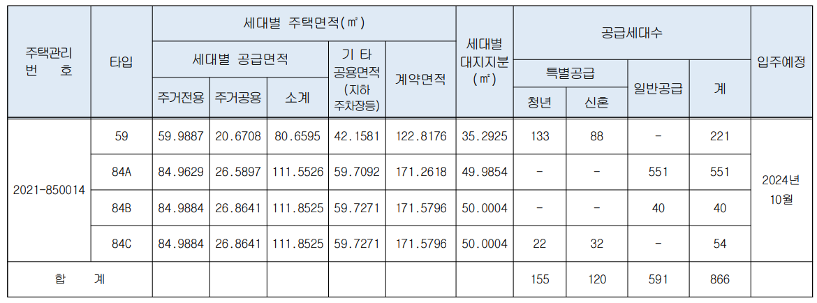주택타입 59형은 청년과 신혼부부에 특별공급 되며, 당첨자 발표 이후에 서류 검토 후 사업주체와 익산시청의 최종 확인에 따른 정당 당첨자의 소득기준 하위 순번 100세대(청년 60세대, 신혼부부 40세대)에 대하여 공고한 임대보증금으로 계약일 전 개별 통보하여 공급될 예정입니다. 또한, 주택형 59 타입의 121세대는 청년 73세대, 신혼부부 48세대로 공급될 예정입니다.