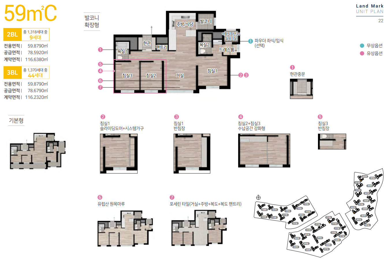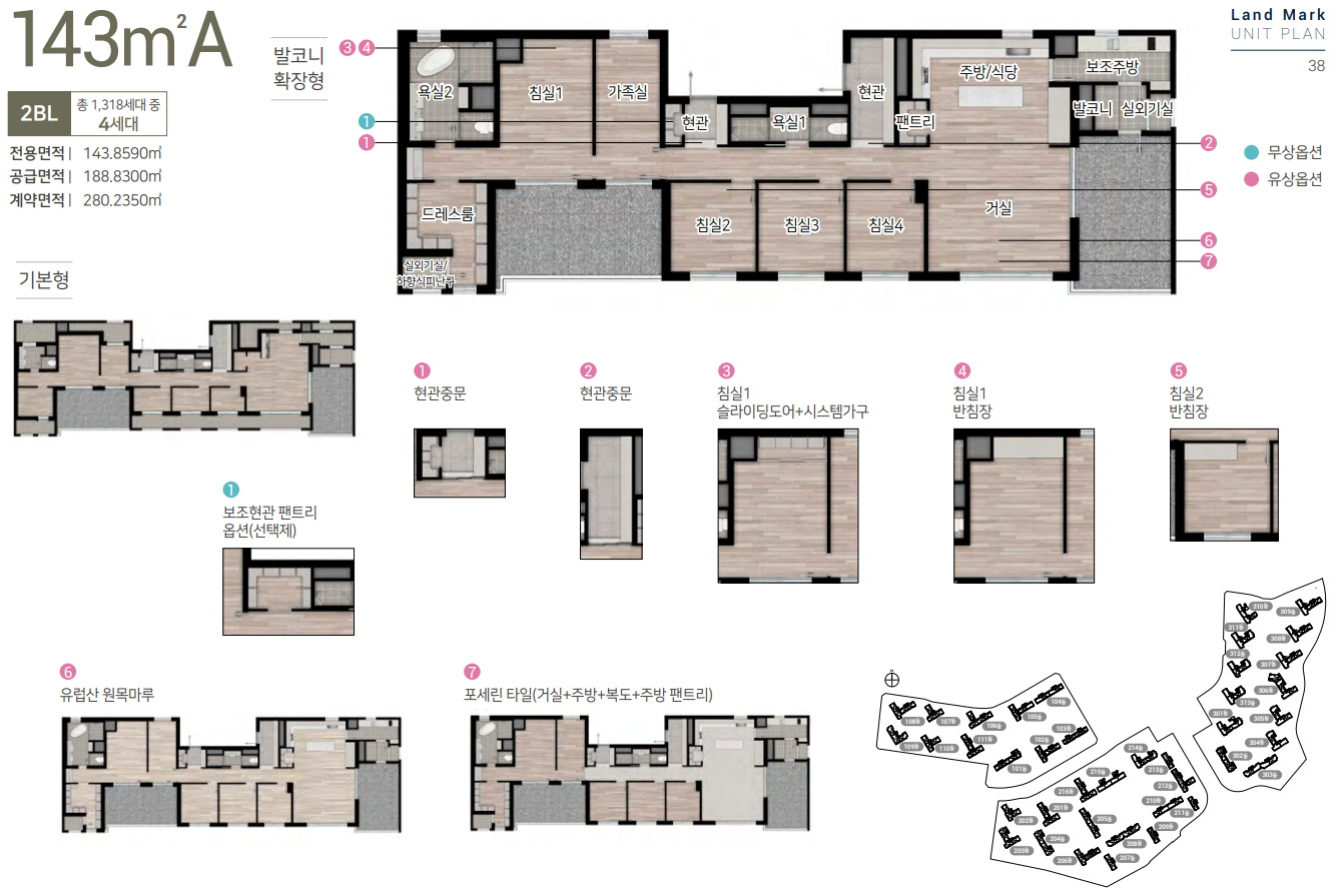 4 Bay 판상형 구조를 포함한 총 22가지 다양한 타입으로 구성되어 있으며, 개방감 및 채광, 통풍이 우수한 공간 평면특화설계로 되어 있습니다.