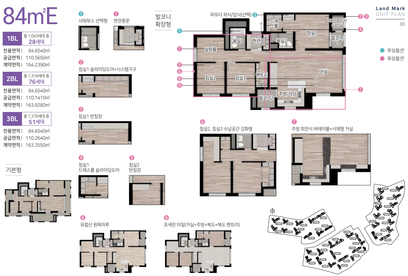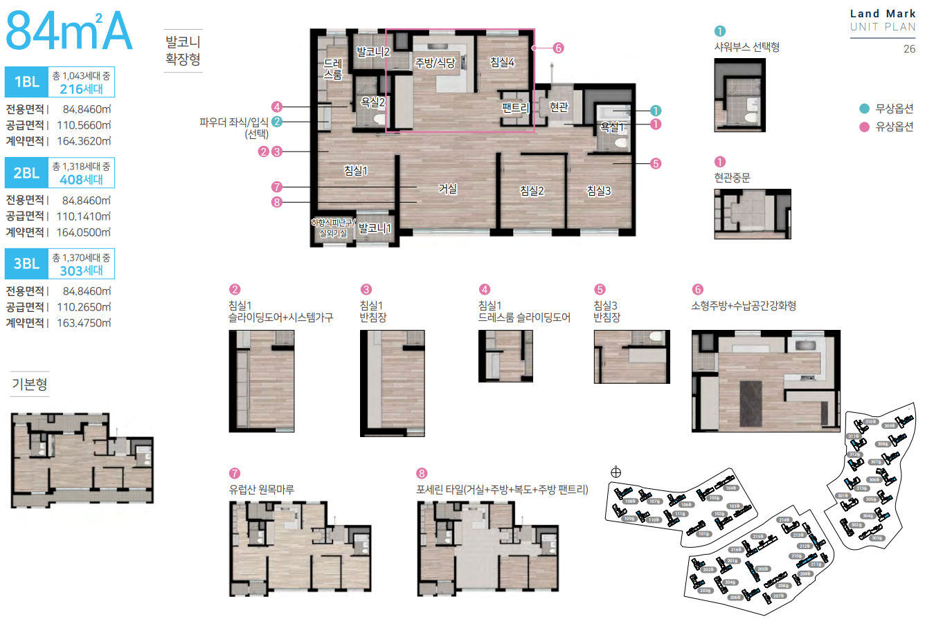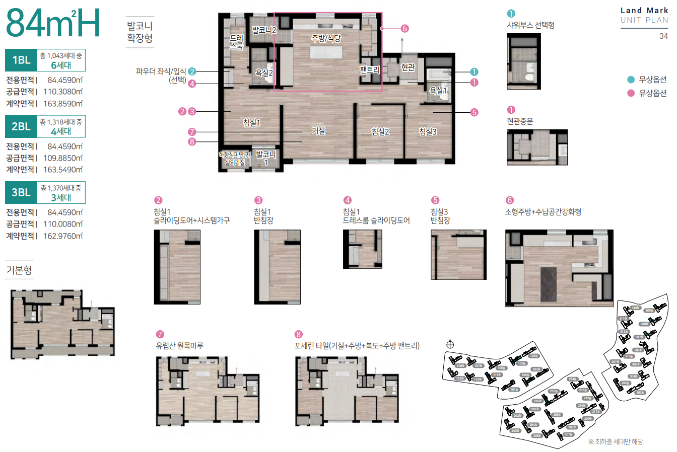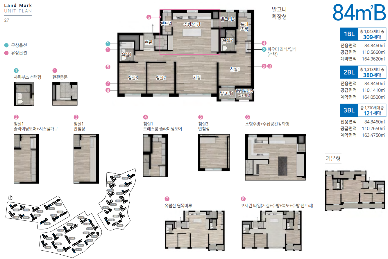 전용면적 84㎡ B타입의 경우 안방 드레스룸, 주방 및 현관 팬트리, 광폭 주방 공간이 적용되었으며,