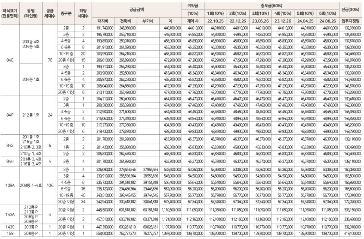 힐스테이트 몬테로이 1블록 분양가격 및 납입일정
