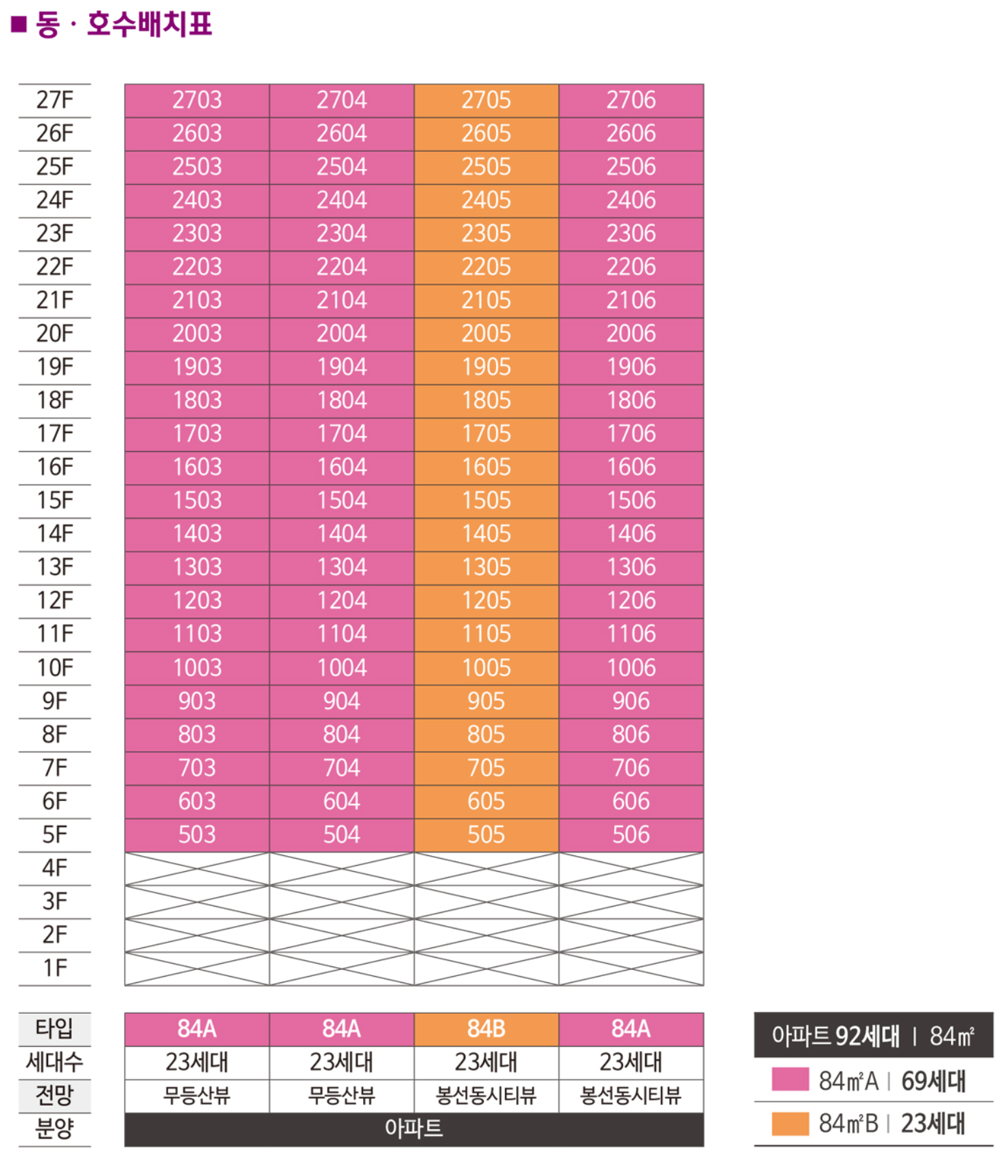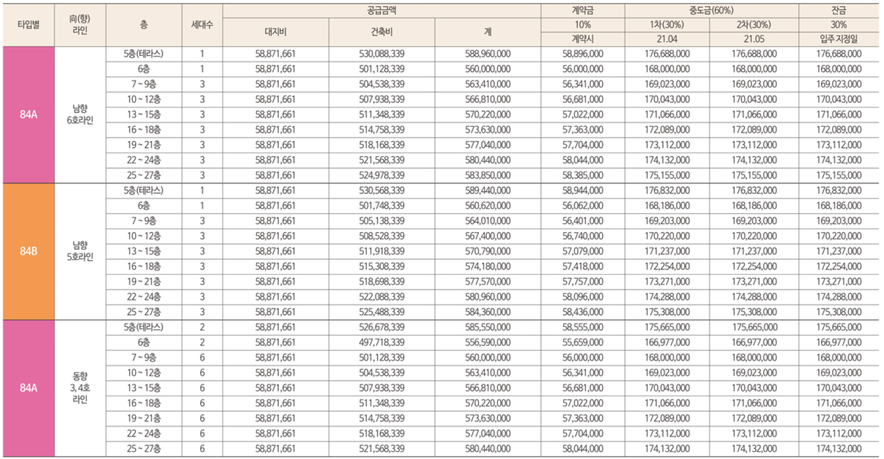 84A는 69세대, 84B타입은 69세대입니다.