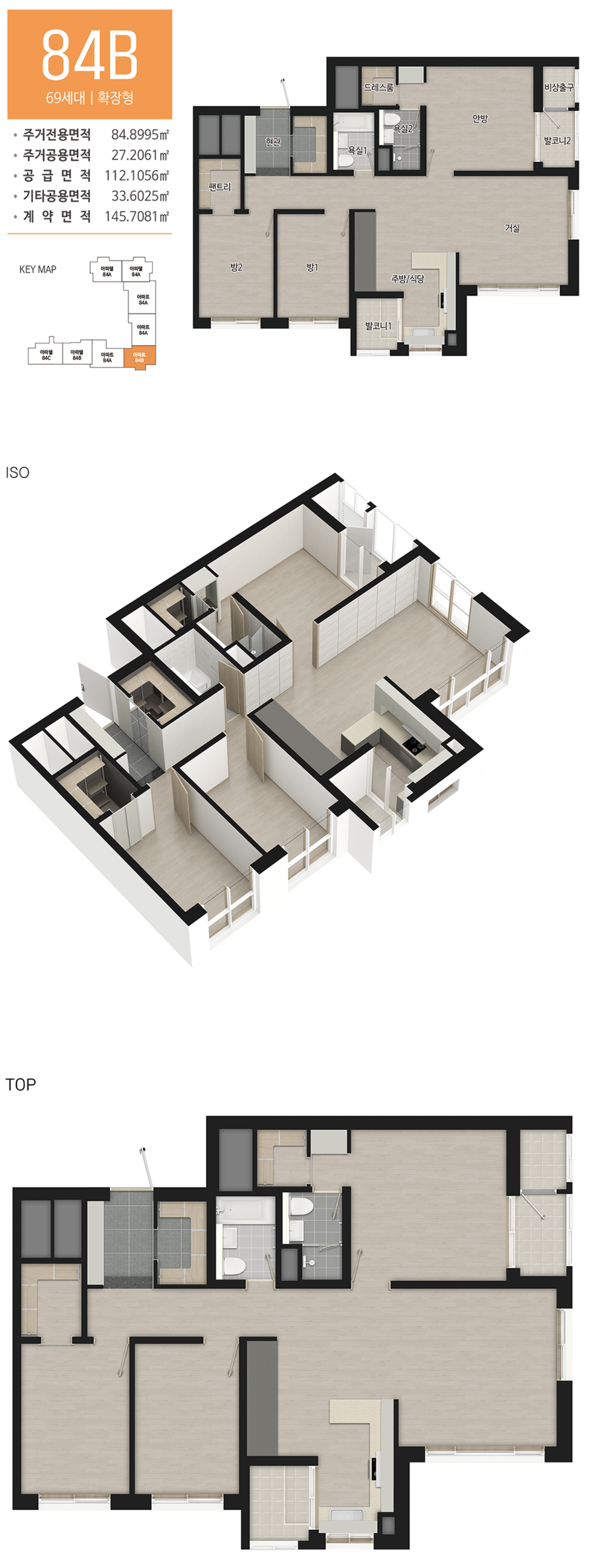 전용면적 84㎡ A타입과 B타입만 공급되며,