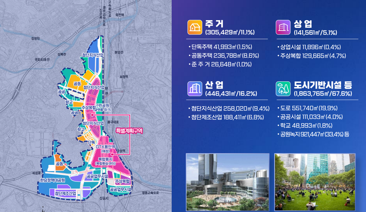 용인시 성장을 주도할 경제도심으로 신성장 중심기능 수행으로 광교신도시, 용인플랫폼시티, 행정중심지, 반도체클러스터까지 상생발전의 축으로 개발될 예정입니다.