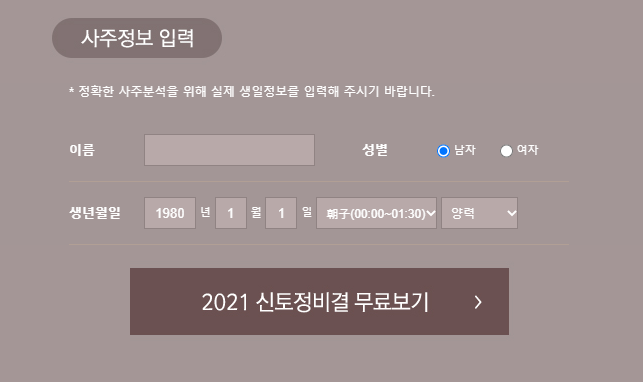2021 신년운세 무료로 조회 할 수 있는
