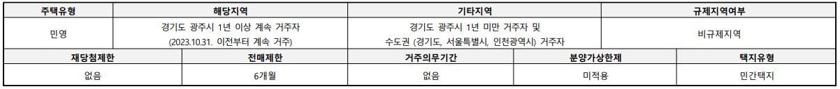 경기도 광주시에 거주하거나 경기도, 서울특별시, 인천광역시에 거주하는 만 19세 이상인 분 또는 세대주인 미성년자의 경우 청약이 가능하지만, 청약신청자 중 경쟁이 있을 경우 해당 주택건설지역인 경기도 광주시 1년 이상 거주자가 우선합니다.
