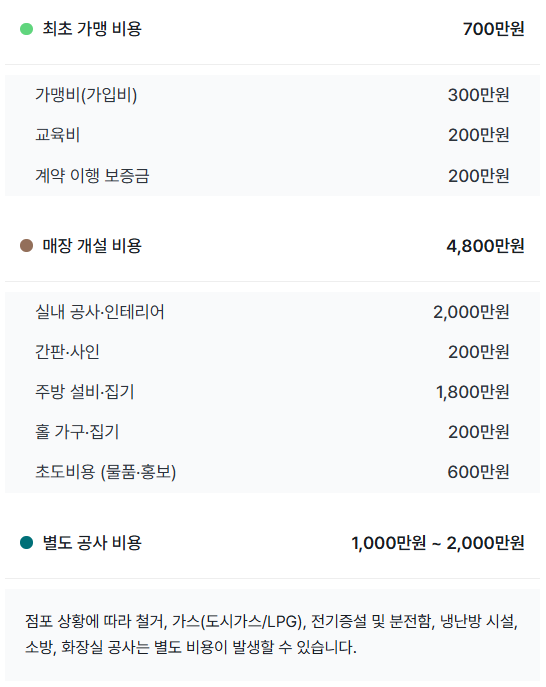 점포 환경에 따라 창업 비용이 달라질 수 있으므로 자세한 상담을 통해 확인하셔야 합니다.