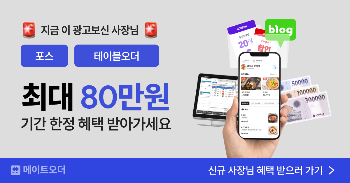 예비창업자라면 꼭 주목해야 할 소식입니다! 매장 운영의 필수 솔루션, 메이트 포스(MATE POS)와 QR오더를 부담 없이 시작할 수 있는 무료 도입 이벤트가 진행 중입니다.