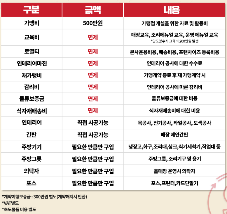 | 가맹비 | 5,000,000 | 가맹점 개설 자료·활동비 포함 |