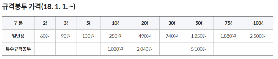 특수마대봉투 가격은 지자체마다 다른데