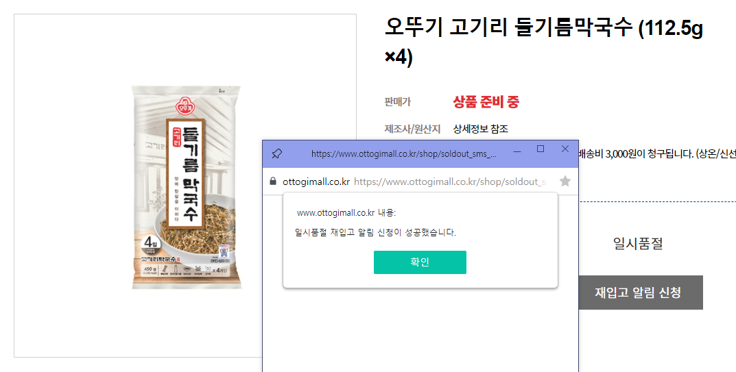 오뚜기몰 재입고 알림신청해봅니다.