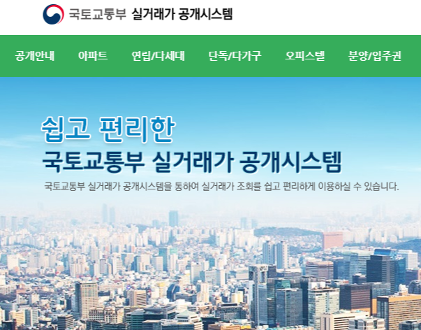 국토교통부에서 운영하는 실거래가 공개시스템은
