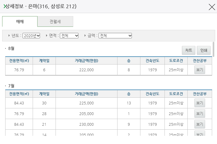 부동산 실거래가 내역을 확인할 수 있습니다.