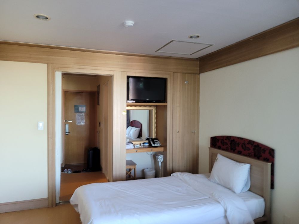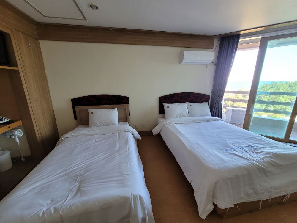 객실은 다양한 타입이 있는데 제가 이용한 객실은 싱글1, 더블1로 침대가 2개 있는 원룸 형태인데 년식이 오래된 리조트였지만 객실상태는 깔끔하네요. 베니키아 주문진의 가장좋은건 테라스가 있어서 바다를 볼 수는데 바다가 가깝고 모든 객실의 방향이 바다쪽이라 객실 선택에 어려움 없을거예요.