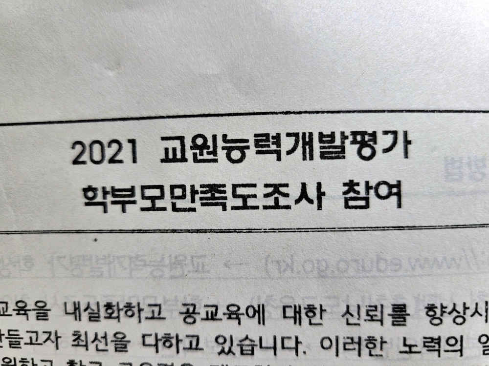 연말이 가까워 오면서 교원능력개발평가 시즌이 돌아왔네요. 코로나로 인해 학교생활이 제한적이였지만 교사의 자기개발 및 전문성 향상을 지원하고 학교 교육력을 높이기 위해 실시하는 만큼 학교로 자녀를 둔 학부모라면 꼭 참여하는게 좋겠지요.